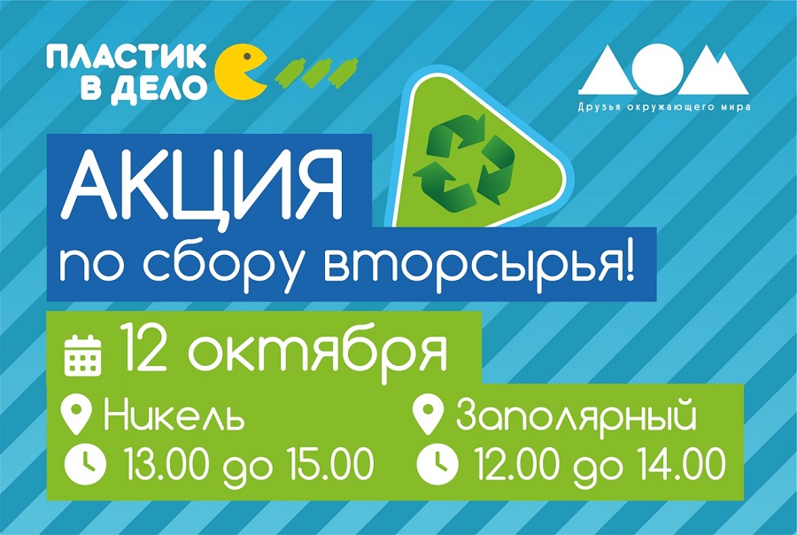 12 октября в Никеле и Заполярном состоится традиционная акция по сбору вторсырья. Жители смогут сдать пластиковые бутылки, канистры, флаконы и другие виды перерабатываемых отходов.